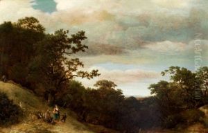 A Wooded Landscape With A Drover And His Herd