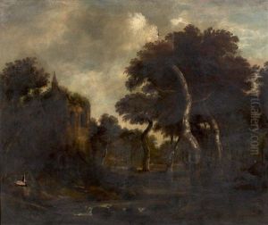 A River Landscape With A Fisherman In A Punt
