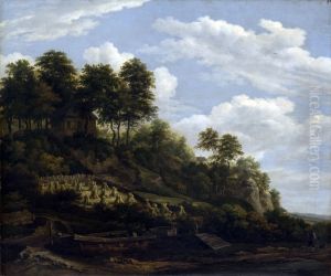 A Wooded River Landscape With Travellers On A Path By A Hamlet