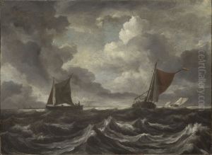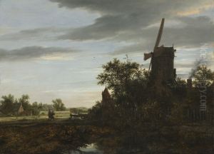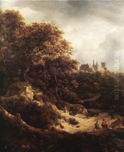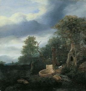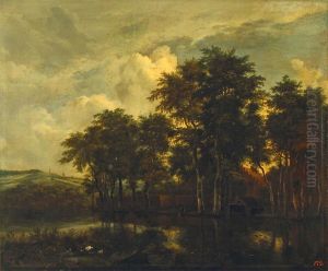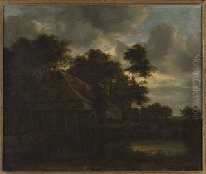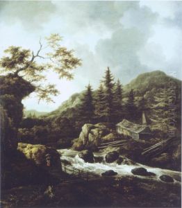 A Rocky Hill with Three Cottages, a Stream at its Foot