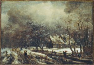 A Winter Landscape (with figures on a road passing through a hamlet)