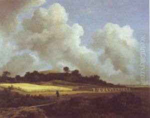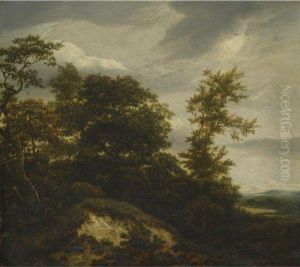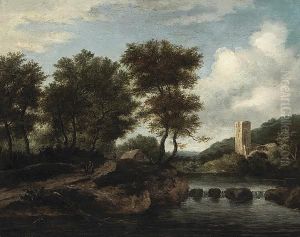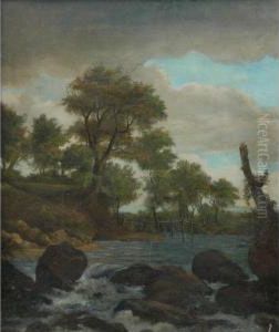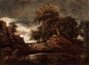 A Wooded Landscape With A Pool And A Peasant With His Dogs On Arise