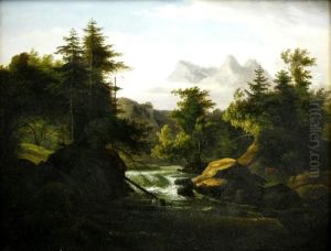 A Scandinavian Landscape With A Waterfall, Castles Beyond