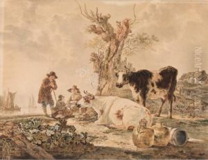 Peasants And Cattle Resting By A River