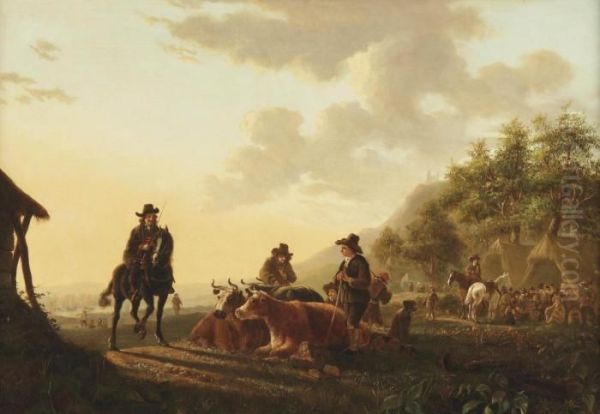 Herdsmen And Their Cattle By An Encampment
