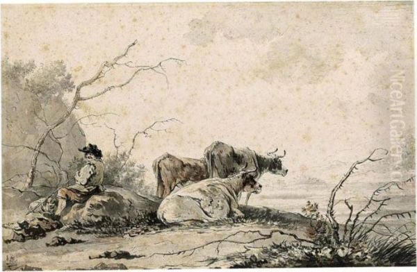 Landscape With Herdsman And Cows Resting