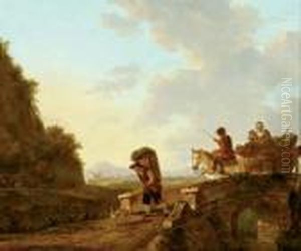 Paysage Aux Promeneurs Et Voyageurs Sur Un Pont