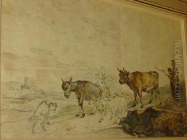Peasants With Oxon, Sheep And Dog Ona Country Road