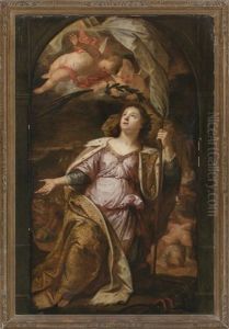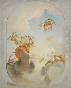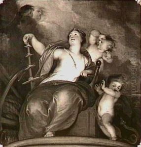 Trompe L'oeil Aux Putti Figurant Des Allegories