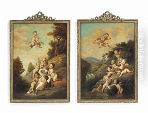 A Bacchanalian Scene With Putti; Also A Companion Painting