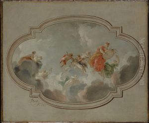 Ontwerp voor een plafondstuk met de apotheose van Aeneas, in de hoeken de vier jaargetijden in brunaille