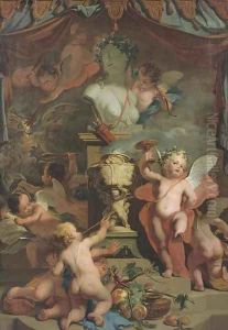 Jacob de Wit was also renowned for his 'witjes,' monochrome oil sketches that mimicked the appearance of white marble bas-relief. These 'witjes' were sought after for their decorative quality and their ability to imitate sculptural elements in painting. Beyond his contributions to decorative arts, de Wit was a respected portrait artist and produced a number of historical and religious paintings throughout his career.