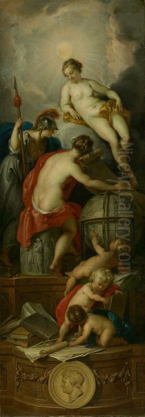 Allegorie op het schrijven van de Geschiedenis-Allegorie op de handel, de wetenschap, de kunst en de geschiedenis-Truth and Wisdom assist History in writing