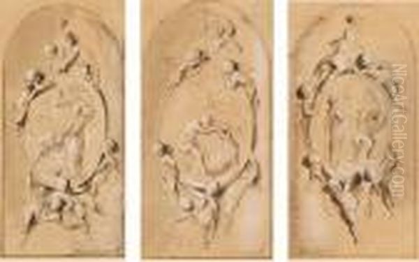 Drei Entwurfe Fur Ein Wandmedaillon Mit Verschiedenen Figuren, Von Putten Umgeben