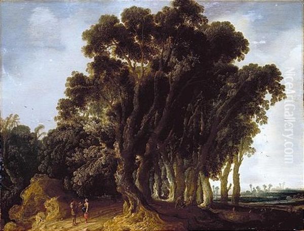 A Wooded Landscape With Travellers Resting, A Shepherd Tending His Flock Beyond