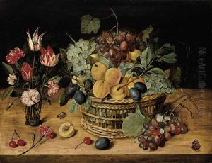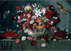 A Still Life With Strawberries In A Delft Vase, Cherries And A Butterfly