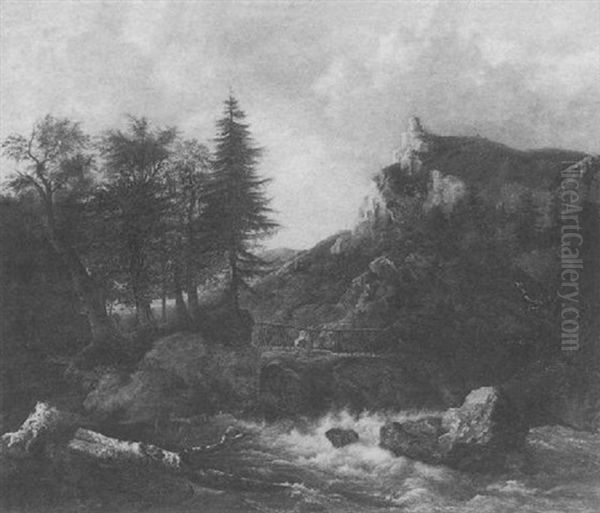 A Scandinavian Landscape Oil Painting by Jacob Van Ruisdael