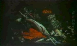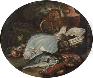 Nature Morte A La Loutre, Crabe, Homard, Poissons, Huitres Et Legumes