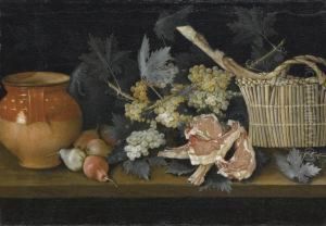 Natura Morta Con Due Galline, Frutta, Verdura E Un Cesto Di Vongole