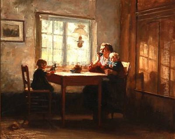 Interior With A Mother And Her Two Children