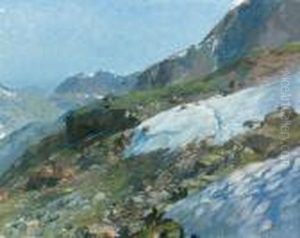 Flusslandschaft Im Gebirge Mit Blick Auf Das Mont-blanc-massiv Oil Painting by Jacobus Hendricus Johannes Nooteboom