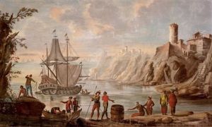 A Capriccio Of A Mediterranean Harbour With Moored Galleons And Figures