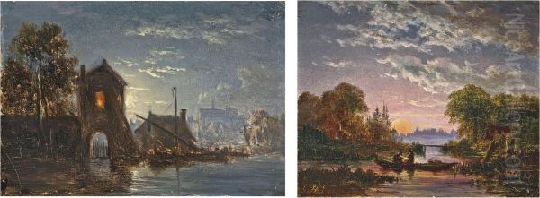 A Riverside Town Under Moonlight