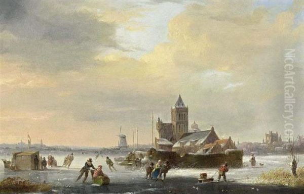 A Winter Landscape With Skaters On A Frozen River