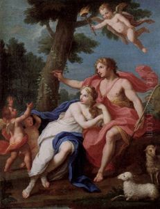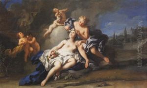 The Young Bacchus Playing With Putti Amongst Grape Vines, His Foot Resting On A Ewer
