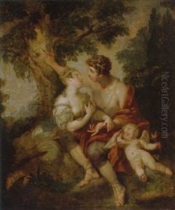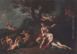 Cupid And Psyche (?) With Four Putti In A Landscape