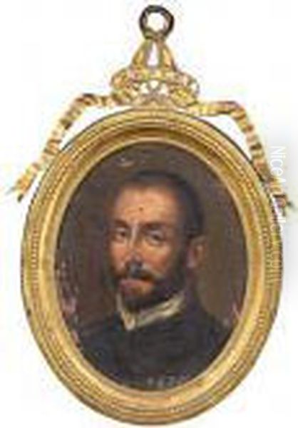 Portraitminiatur Eines Bartigen Mannes Im Dunklen Gewand Mit Weisem Kragen