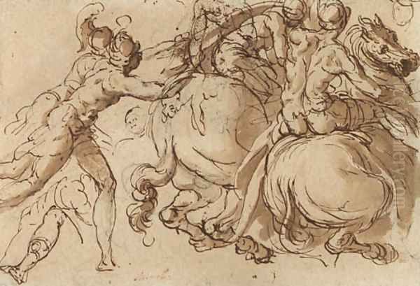 Bring the timeless beauty of Jacopo Bertoia's Soldiers on horseback pursued by foot-soldiers into your home with a handmade oil painting reproduction. Carefully recreated on canvas by skilled artists using traditional techniques, this piece captures the delicate brushwork, subtle light, and vibrant color of the original masterpiece. With museum-level quality and rich texture, it brings elegance and artistic depth to any space. Enjoy free shipping and make this masterpiece a part of your personal collection.