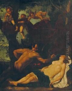 Der Schlafende Bacchus Mit Einer Nymphe Und Zwei Putten