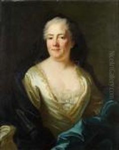 Portrait D'une Dame De Qualite Au Manteau Bleu Toile Marouflee Sur Panneau