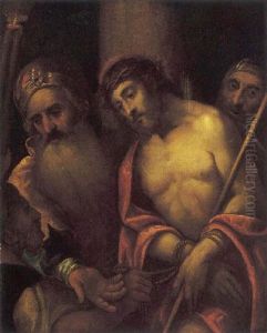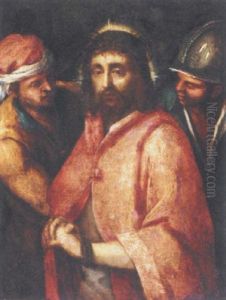 Pontius Pilatus Wascht Seine Hande In Unschuld. Vor Ihm Der Zum Tode Verurteilte Christus (matthaus 27, 15-30)