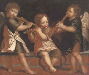 Three putti playing flutes