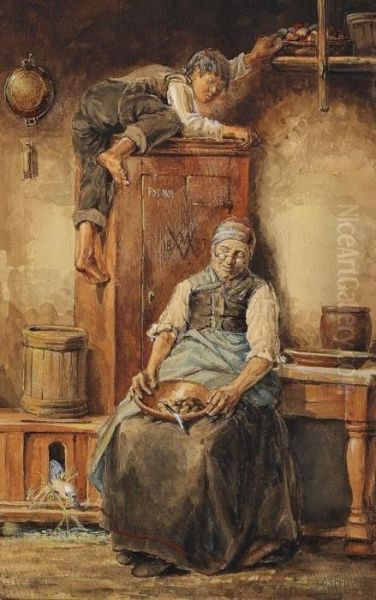 Bring the timeless beauty of Jacques Alfred Van Muyden's Der Eierdieb into your home with a handmade oil painting reproduction. Carefully recreated on canvas by skilled artists using traditional techniques, this piece captures the delicate brushwork, subtle light, and vibrant color of the original masterpiece. With museum-level quality and rich texture, it brings elegance and artistic depth to any space. Enjoy free shipping and make this masterpiece a part of your personal collection.