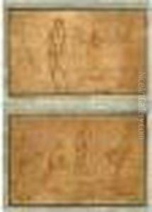 Watercolour And Black Chalk On Vellum Within Brown Ink Framing Lines