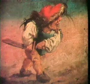 A Dwarf Holding A Jug In A Landscape