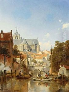 A Town Scene With Figures On A Canal Oil Painting by Jacques Carabain