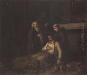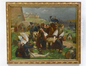 Des Cavaliers Secourant Des Blesses Sur Un Champ De Bataille