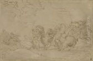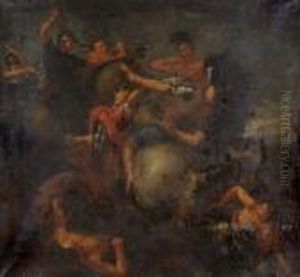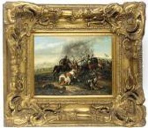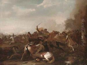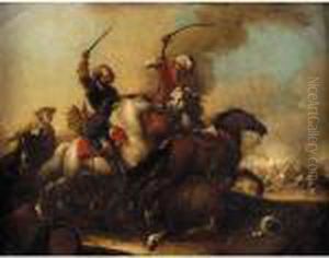 Umkreis Reitergefecht. Ol Auf Leinwand. H 34,5; B 44 Cm