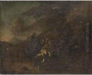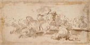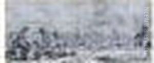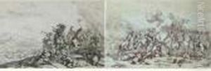 A Cavalry Skirmish On The Hills Above A Walled Town