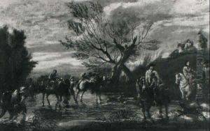 Travellers Crossing A Stream