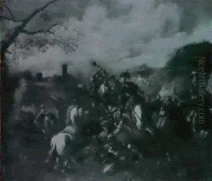 Mounted Figures In A Battle Skirmish With Infantry Soldiers Beyond