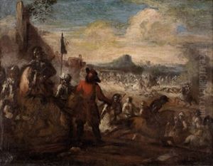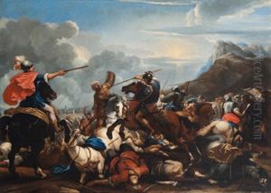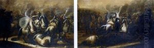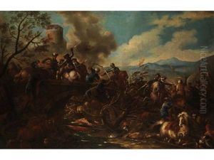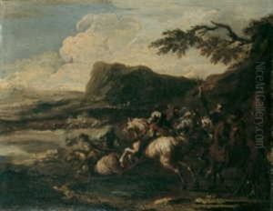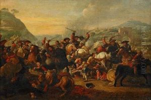Scena Di Battaglia In Un Paesaggio Montuoso (+ Another; Pair)