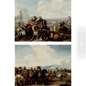 Reitergefecht Zwischen Christen Und Turken (+ Another Similar; Pair)