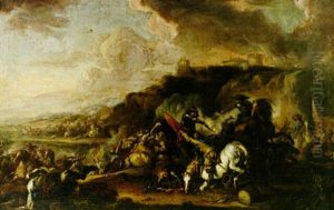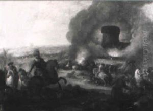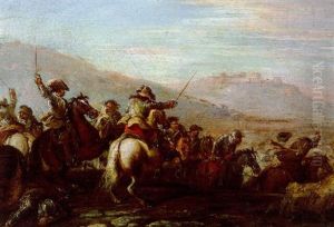 A Cavalry Skirmish With A Moorish Temple Beyond