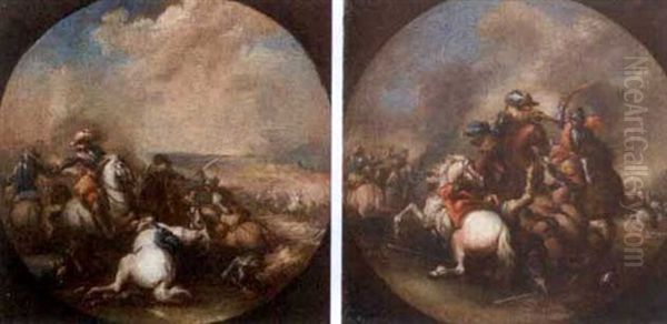 Cavalry Scene - The Thirty Years War (+ Another, Similar; Pair)