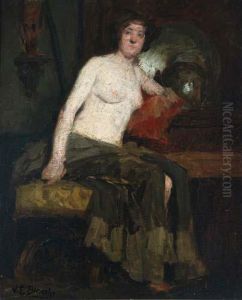 Interieur Mit Sitzendem Weiblichen Halbakt